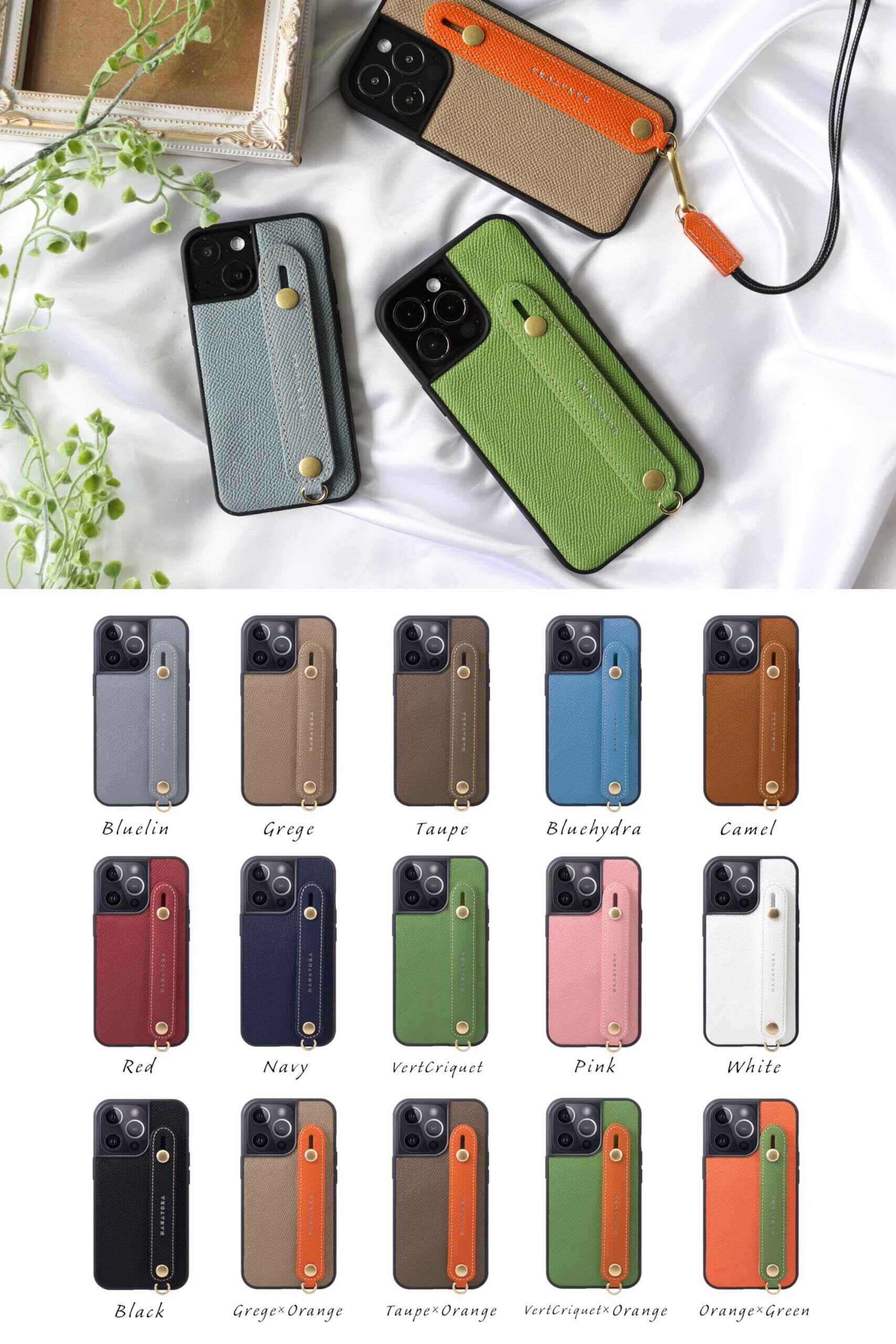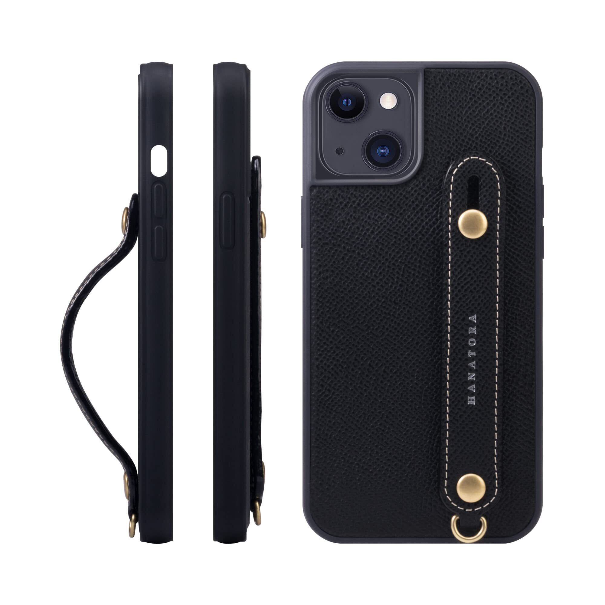 HANATORA iPhone15Plus ケース 本革 耐衝撃 背面ベルト スマホケース スマホ スタンド機能 ネック ストラップ 付き エンボスレザー ギフト マグネットなし ブラック NGH-15Plus-Black