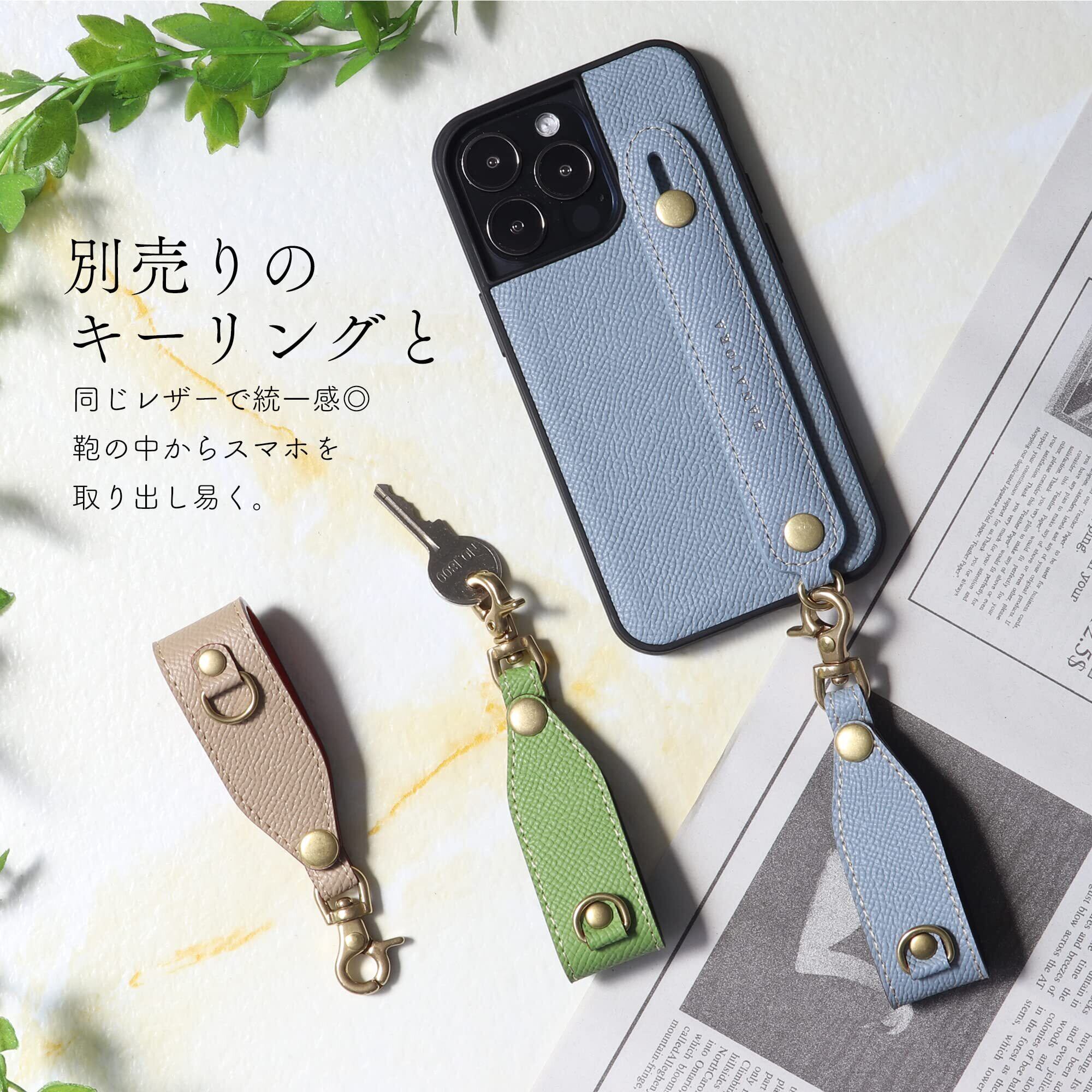 指を通すだけで安定感抜群のベルトはスタンド機能にも。