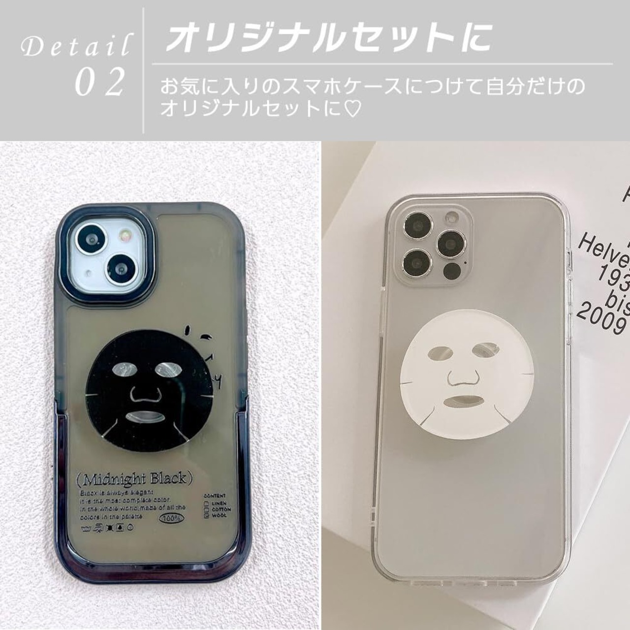 スマホグリップ 韓国 かわいい 顔パック フェイス マスク スマホリング スマホホルダー落下防止 (ホワイト)